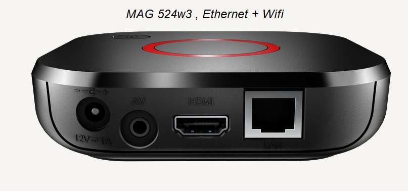 Genuine Infomir MAG 524w3 is 4K Linux IPTV Receiver with HEVC and Ethernet port.